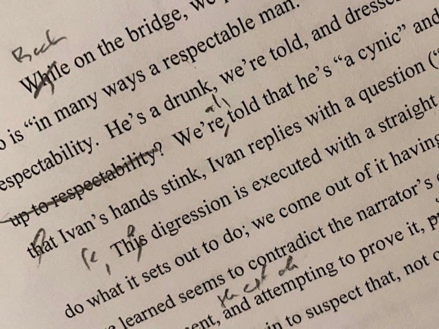 Whether you’re interested in becoming a better writer or a better reader, it’s the same process: being alert to our response to the text, whether that text is by some Russian master, or we just wrote it ourselves, yesterday.