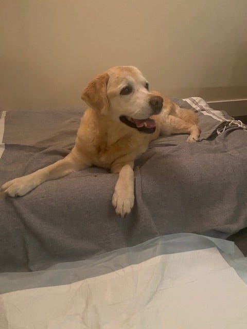 I also wanted to let you know the happy news that our beloved dog Guin is feeling better. We were really worried earlier this week but then found out she has a urinary tract infection, and she’s already done a beautiful bounce-back on the meds.