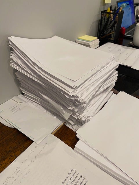 I’ll put those changes in after I get through that swath once, then print it out again, and do that exact thing again: read through it on paper, marking it up.