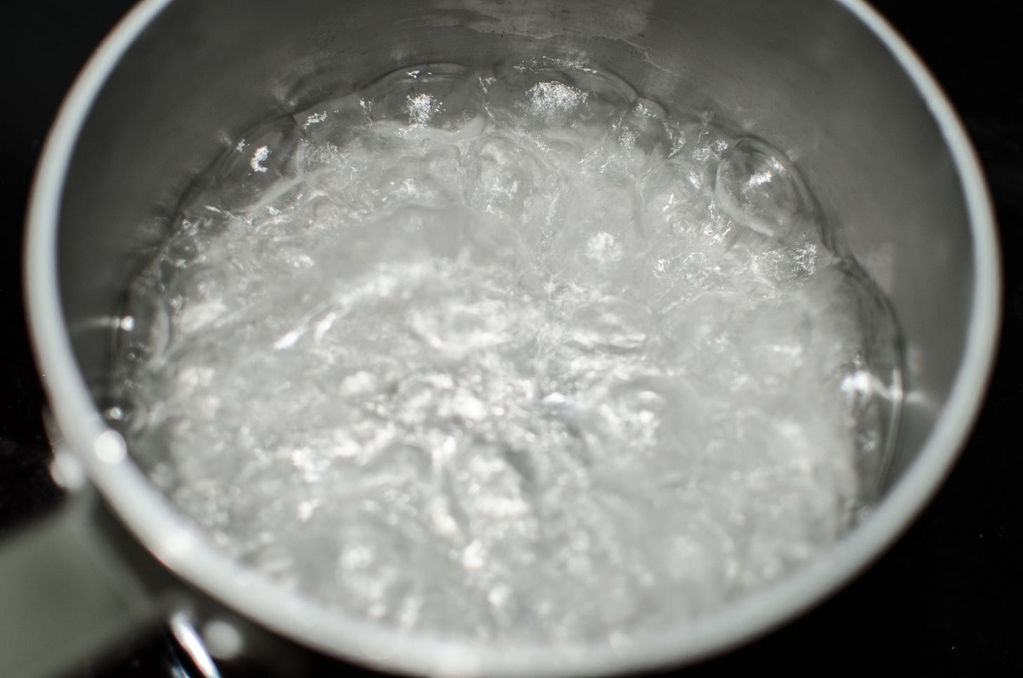 This is one way of talking about converting a story from the “exposition” to the “rising action.” Things are a certain way – that’s the pot of water on the stove. Then things change and the reader feels the increase in tension, and in meaning – that’s the water boiling.