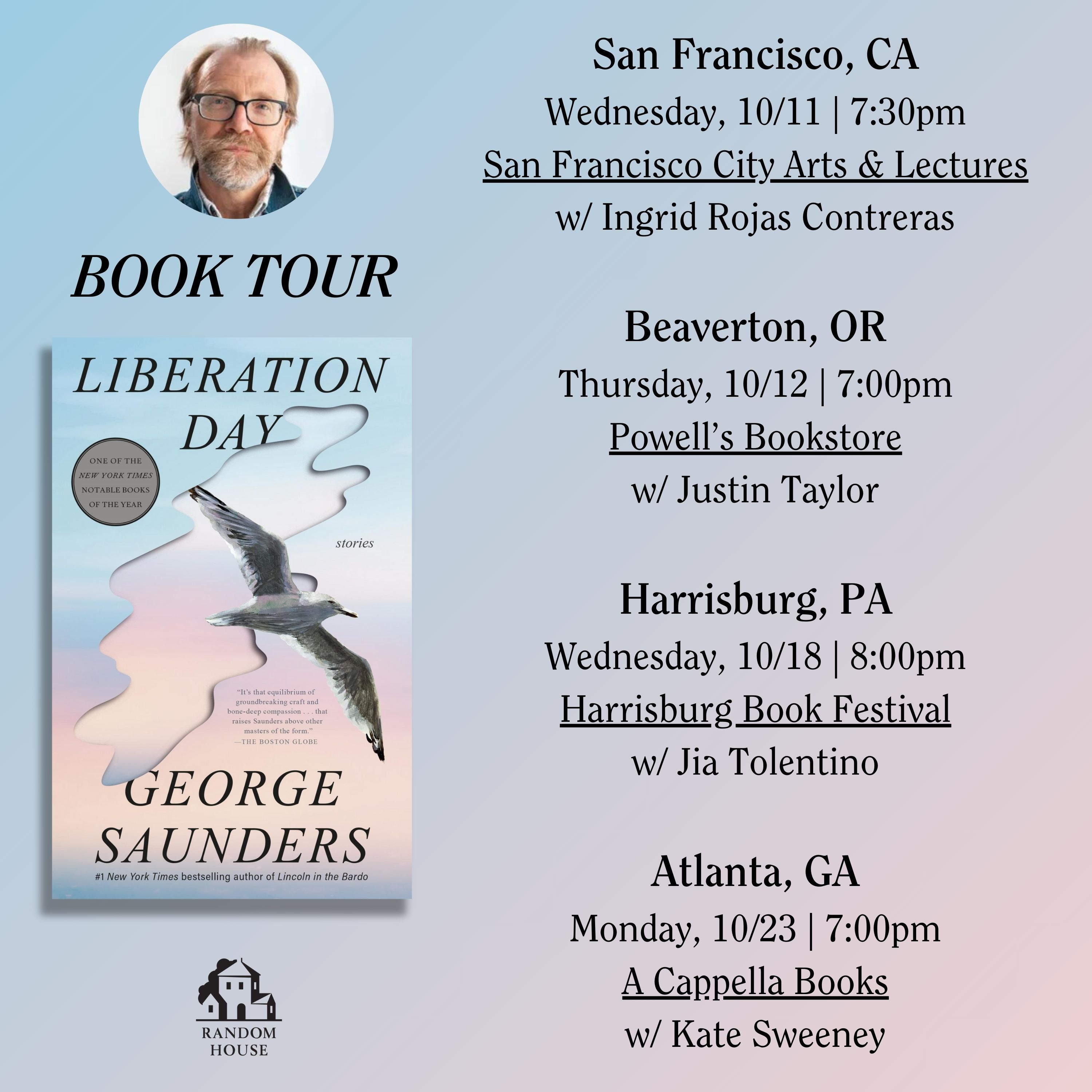 I’m also speaking in Lexington, Kentucky, at The University of Kentucky Gaines Center for the Humanities, as part of the 2023 Bale Boone Symposium, “An Evening with George Saunders,” at 6 p.m., Thursday, Oct. 19, in the Kentucky Theatre.