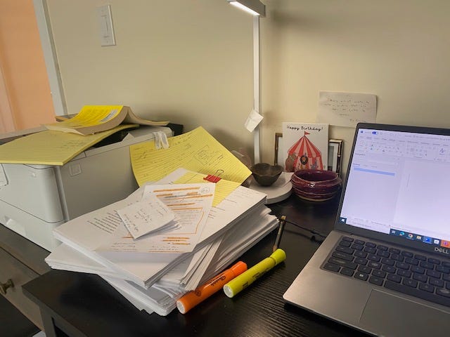I started the book in July of 2023 (on the Fourth of July, my notes tell me), up in Corralitos and worked really hard on it through some personal challenges, mostly to do with illnesses in my family. Through it all, I kept turning to the book, as we writers do, as a place of solace and control. It was a really good friend to me, and taught me a lot, especially in terms of taking on some new aesthetic challenges.